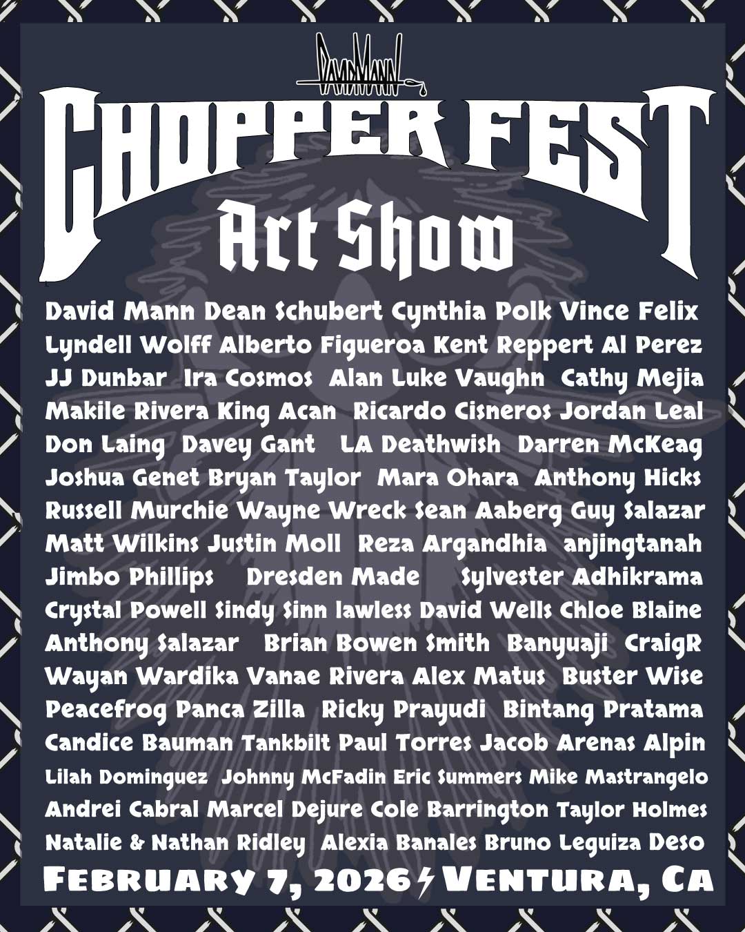 If you would like to participate in the David Mann Chopper Fest Art Show, please contact Sean McKean at sean@chopperfestival.com.